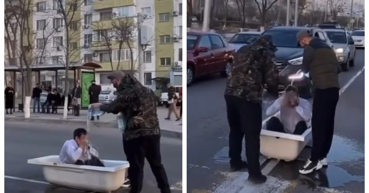Ақтаулық жігіт жолдың ортасында шомылды (ВИДЕО) Ақтау қаласының тұрғыны жолдың ортасында шомылып, бейнежазбасын әлеуметтік желілерге жариялаған деп хабарлады turkystan.kz. ПД мәліметінше, жігіттер бұл әрекетке бәстен ұтып шығу мақсатында барған. Жолдың қақ ортасына шығып шомылу - бір тараптан екіншісіне қойылған талап.