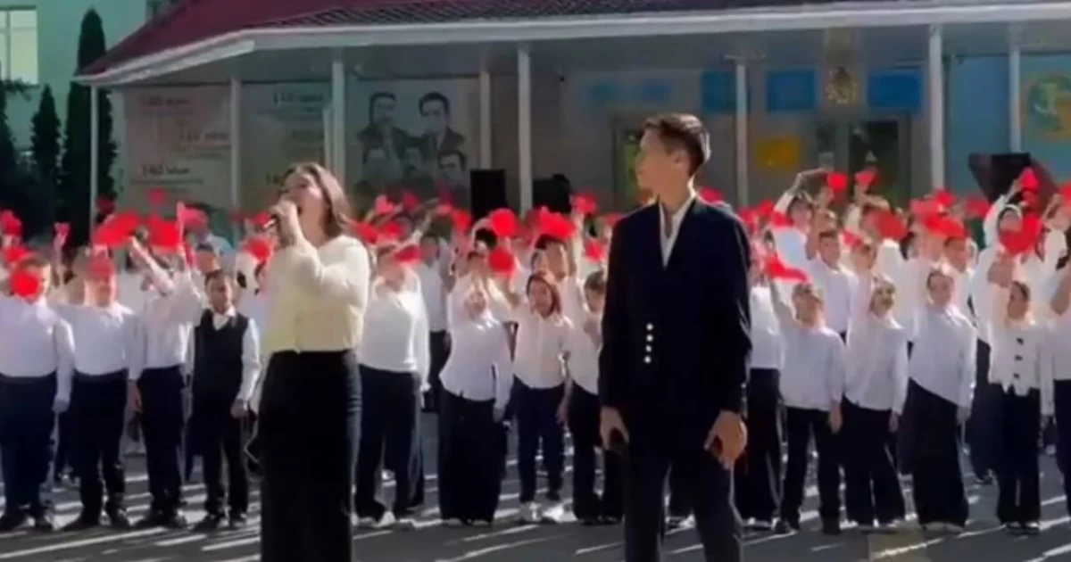 Ауқымды флешмоб әр жастағы мектеп оқушыларын біріктіріп, өмірін білім беру ісіне арнаған жандарға арналған нағыз мерекелік қойылымға айналды.