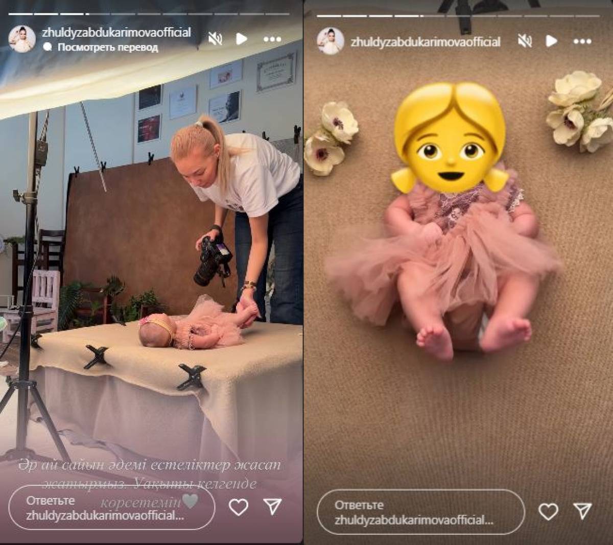 Жұлдыз Әбдікәрімова екі айлық қызына фотосессия жасатты