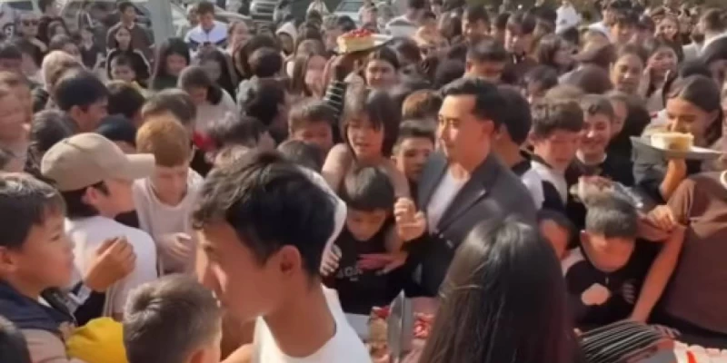 Желіде жария болған видеода ұйымдастырушылар әуелі ұзын үстелге торт қойып, алып шыққан. Олар кезектің алдында тұрған балаларға торт тілімдерін ыдысқа салып берген. Алайда артта тұрған қауым оларды күшпен ығыстырды. Ақыр соңында тамаққа талас басталып кеткен. Қалың топтың ішінде кішкентай балалар да бар.