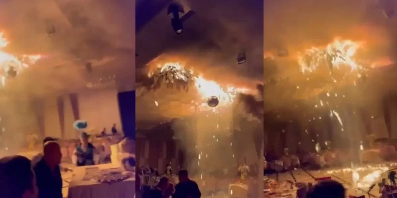 Видеодан байқағанымыздай, той кезінде тойхананың төбесі қызыл жалынға оранған. Қонақтар мен тойхана қызметкерлері жан-жаққа жапатармағай қашқан.