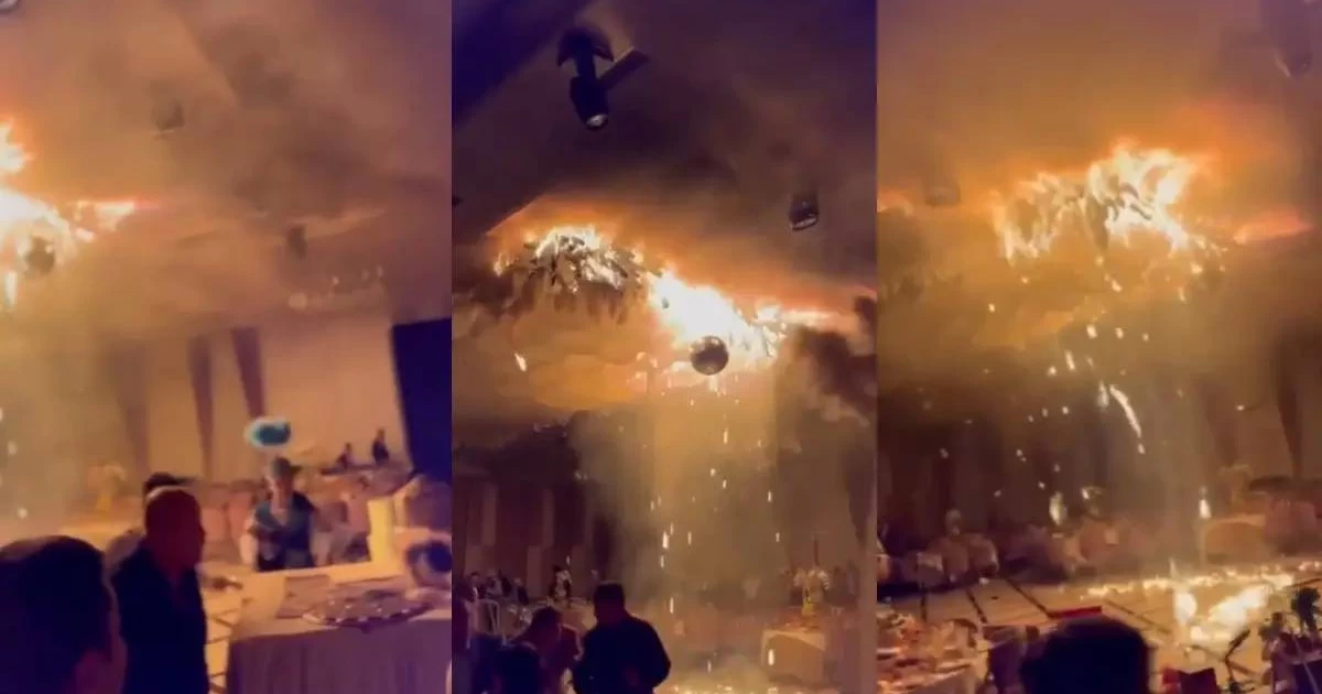 Видеодан байқағанымыздай, той кезінде тойхананың төбесі қызыл жалынға оранған. Қонақтар мен тойхана қызметкерлері жан-жаққа жапатармағай қашқан.