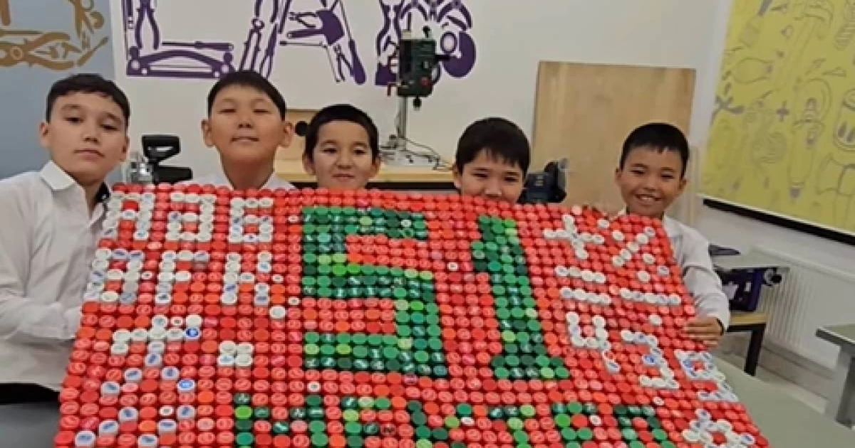 Оқушылар көркем еңбек пәнінің мұғалімі Қасымов Ерасылдың жетекшілігімен бөтелке қақпақтарын қайта өңдейтін ерекше эко-жобаны қолға алды.