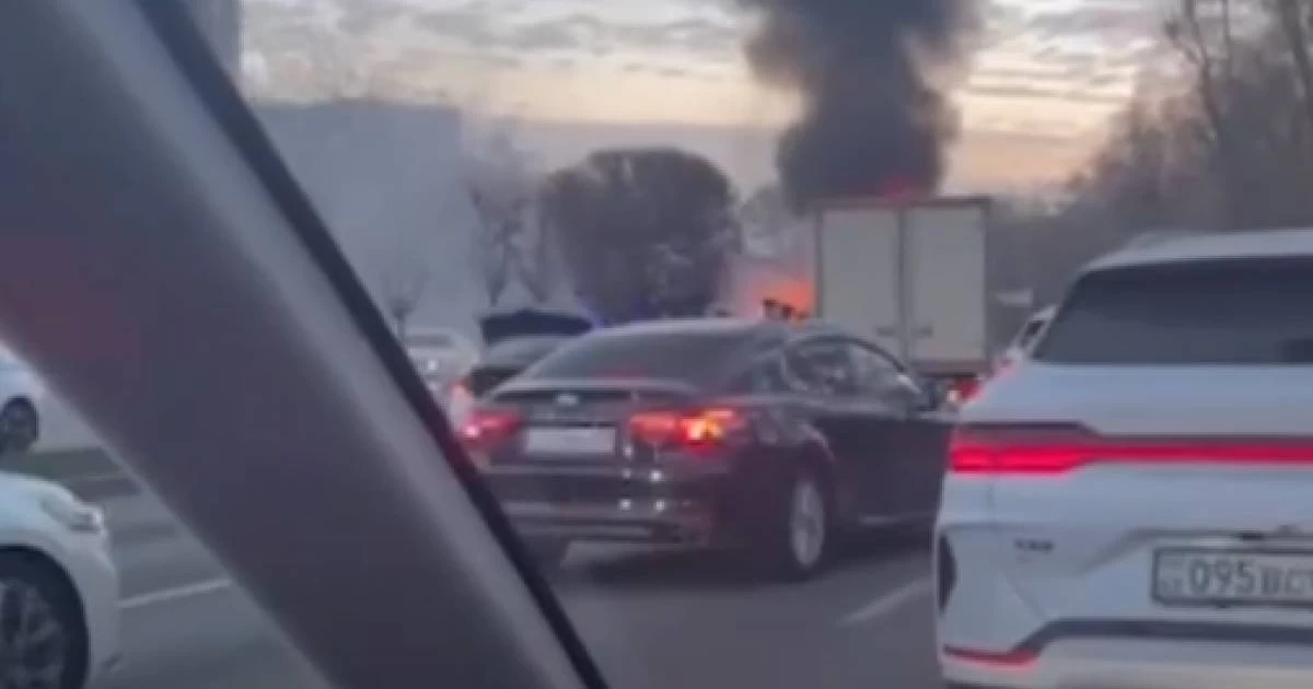 «Соқтығыстан кейін жол апаты салдарынан тоқтап тұрған Lexus көлігіне осы даңғылмен шығысқа қарай келе жатқан Hyundai автокөлігі соғылған. Қақтығыстан соң Toyota автокөлігіне от тұтанған.
