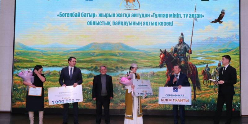 Бөгенбай батыр» жырын жатқа айтудан «Тұлпар мініп, ту алған» халықтық өнер байқауы өңір халқының біртұтастығын көрсетті. Жыршылық сәл көмескі тартқанмен ел арасынан еш үзілген жоқ. Міне, сол жыршылық жанрды қайта жандандырып, жас жеткіншектеріміз әуелете биікке көтерді. Ұлттық кодты көзінің қарашығындай сақтап, көнеден жаңаға, бабадан балаға жалғап, мирас ете білген қазақ өнеріне өз үлесін қосқан Бөгенбай батыр жырын жатқа оқудан «Тұлпар мініп, ту алған» облыстық байқауының үшінші орынды Өмірғалиева Жанерке алды. Үшінші орын иегеріне 250 мың теңге мен жеңімпаз дипломы табысталды.