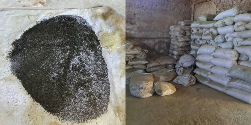 Яғни егде жастағы ер адамның ауласындағы сарайынан 2000 келі болатын 40 қап насыбай өнімі мен оны дайындайтын құрылғылар табылды.