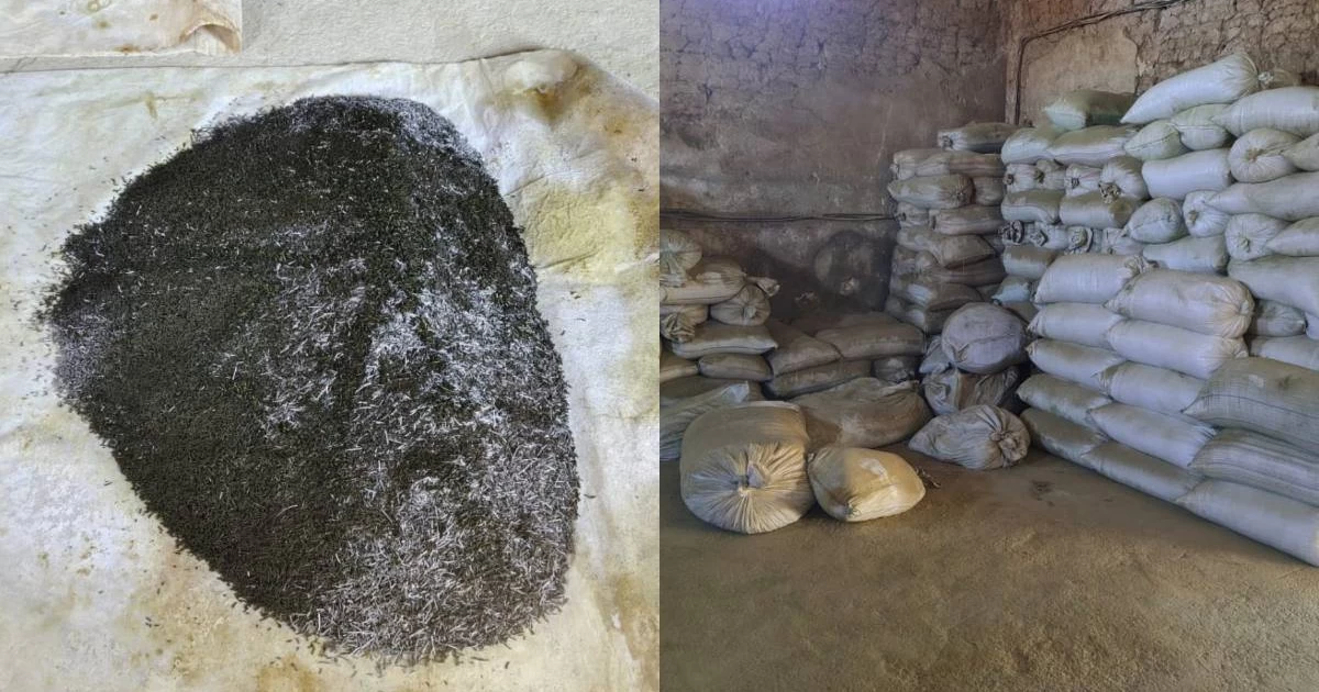 Яғни егде жастағы ер адамның ауласындағы сарайынан 2000 келі болатын 40 қап насыбай өнімі мен оны дайындайтын құрылғылар табылды.