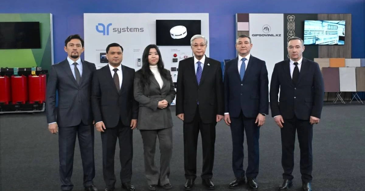 Қасым-Жомарт Тоқаевқа винилді гипсокартон панелін шығаратын «Гипсовинил», өрт дабылдары, бейнекамералар мен домофондар өндіретін QR Systems зауыттарының өнімдері көрсетілді.