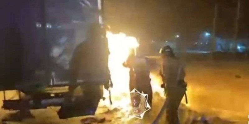 Астанада, Байқоңыр ауданында, Алаш тас жолында газ баллонды жабдықталған жүк көлігі өртенді.