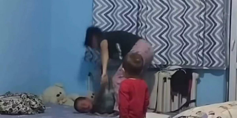 Видеоны әйелдің қонаққа келген құрбысы түсірген. Оқиға куәгерлерінің айтуынша, анасы баласын ванна бөлмесіндегі кранды жаппай кеткені, сол себепті астыңғы пәтерге су кеткені үшін ұрған.