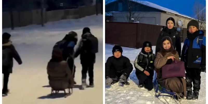 Бастауыш сынып мұғалімі Бибінұр Жақсылықова Instagram парақшасында оқушыларының өзін шанамен үйіне дейін апарып салуды ұсынған видеосын жариялады. Мұғалімнің "ұят емес пе?" деген сұрағына олар "жоқ" деп жауап берген.