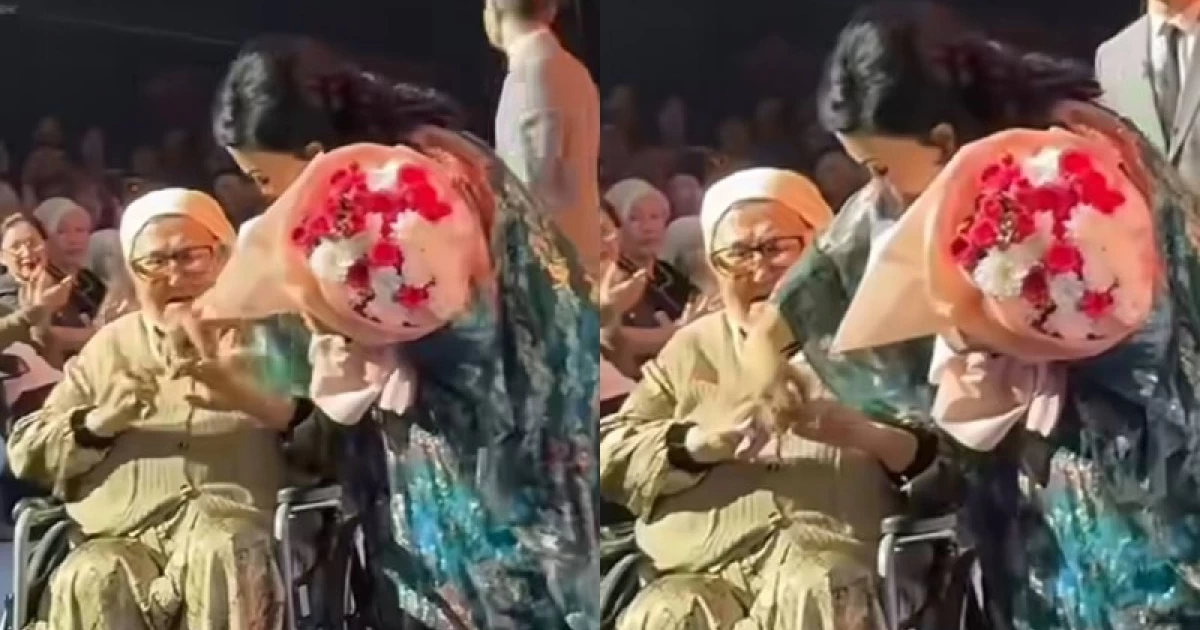 Өнер иесі сахнада отырған көрермендердің бірімен тілдесіп, оның жасы үлкен екенін білген соң, күтпеген шешім қабылдаған.