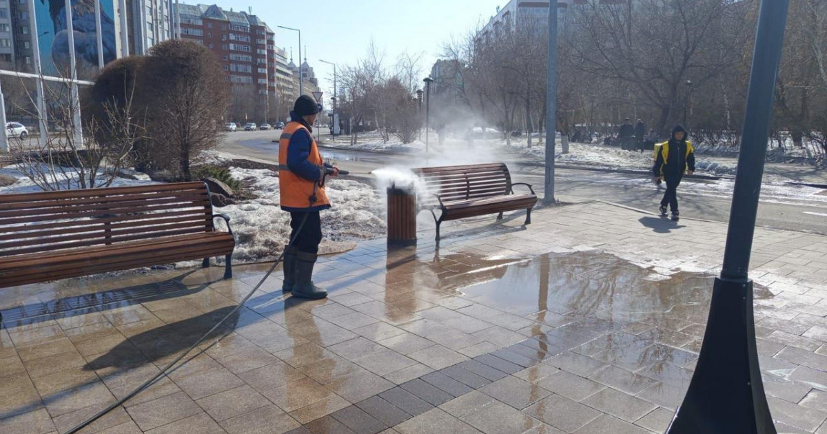 Қазіргі таңда қаланың барлық алты ауданында санитарлық тазалау жұмысы жүргізілуде. Тротуарлар мен жол жабындары арнайы техниканың көмегімен тазаланып, көгалды тұстар және басқа жерлер ретке келтіріліп жатыр.