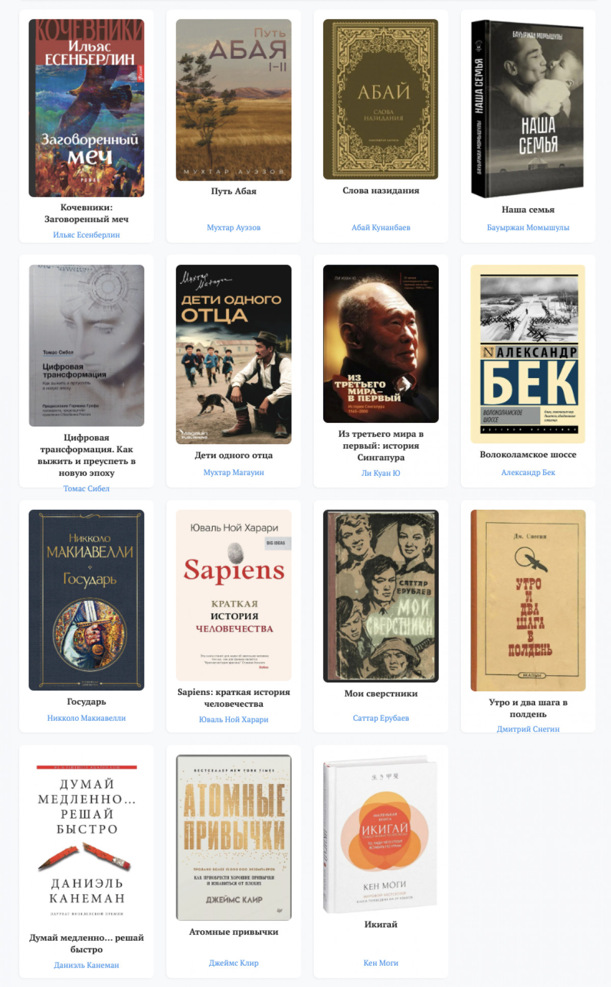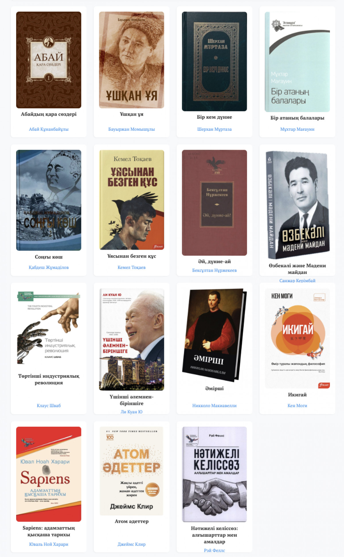 Алты ай бойы қатысушылар арнайы сарапшылар комиссиясы іріктеген 15 кітаптан оқып шықты. Тізімге Абай Құнанбайұлы, Мұхтар Әуезов, Бауыржан Момышұлы, Ли Куан Ю, Томас Сибель сынды авторлардың еңбектері енді.