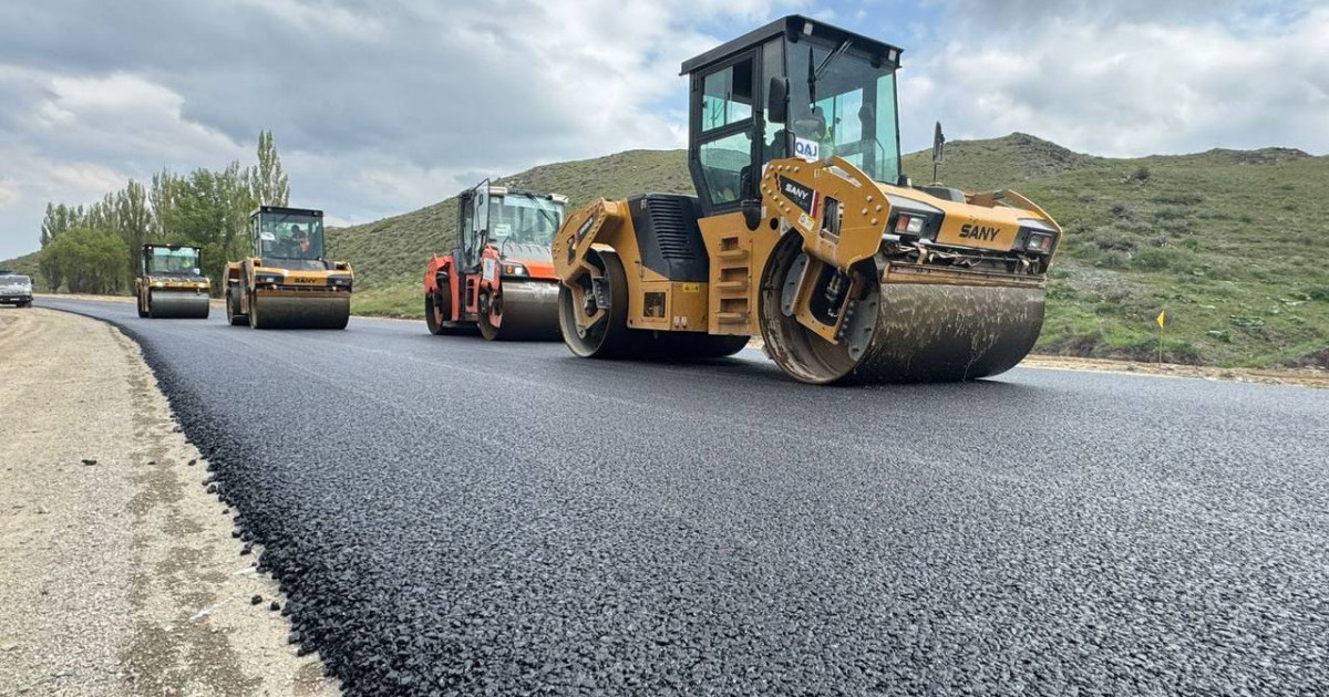 9 шақырымдық учаскеде қиыршық тасты-мастикалық асфальтбетон қоспасынан жоғарғы қабат төселді.